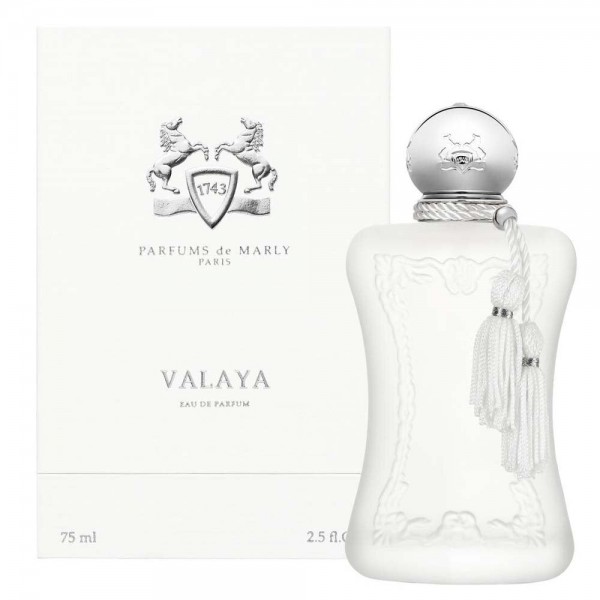 Valaya by Parfums de Marly is a Floral Fruity fragrance for women. This is a new fragrance. Valaya was launched in 2023. The nose behind this fragrance is Quentin Bisch. A radiant aura and yet, an impalpable softness. This elegant floral-musky-woody fragrance created by Julien Sprecher is a unique play on codes, materials and subtle contrasts. An evocation of the skin caressed by a veil of cotton. Fresh top notes as bergamot, mandarin and sweet white peach, lead to a blend of white flowers, settling on musk and ambrofix sensual base notes.